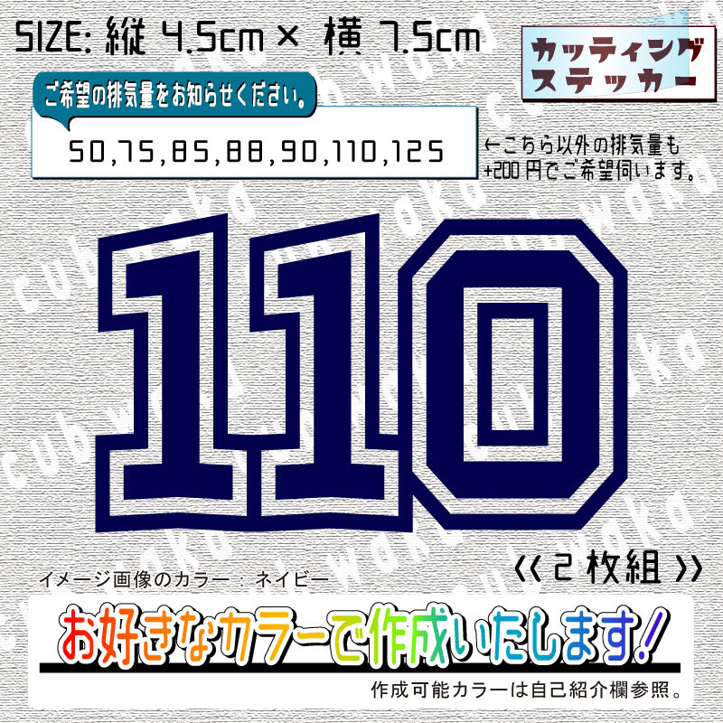 - 排気量⑧ステッカー2枚組 文字絵柄だけ残るカッティングステッカー・CUB・カブ・リトル・ハンター・クロス・プレス