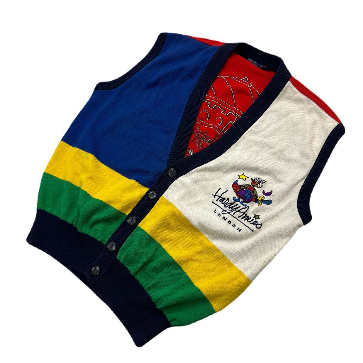 > HARDY AMIES ハーディエイミス デザイン マルチカラー ニット ベスト ゴルフベスト メンズ 3 通年 スポーツ ゴルフ オシャレ 古着■A353