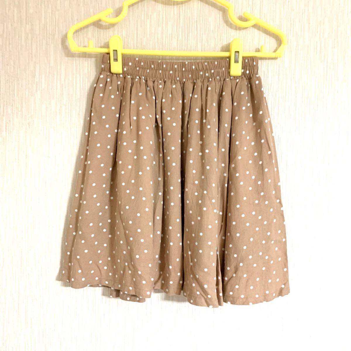 - 匿名配送 ウエストゴムギャザースカート ミニドット ミニスカート 水玉 ベージュ M フレアスカート
