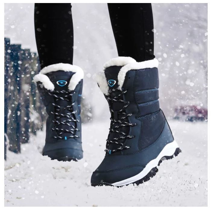 > 23.5cm 37号 冬靴 レディース シューズ ヒール ブーツ 防寒 防水 雪 スノー防滑 ブルー 軽量 新品 送料無料