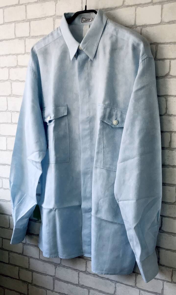 - [AHB]16-USED GIANNI VERSACE(ジャンニ・ヴェルサーチェ) 長袖シャツ【水色/花柄/サイズ52(EL)/メンズ】