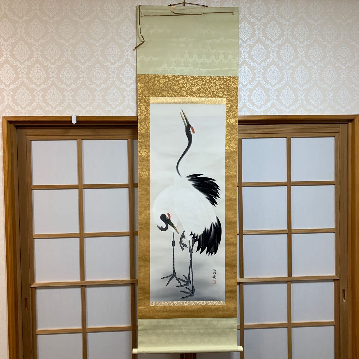 - 掛軸 模写 双鶴 木箱有り 紙箱有り No103