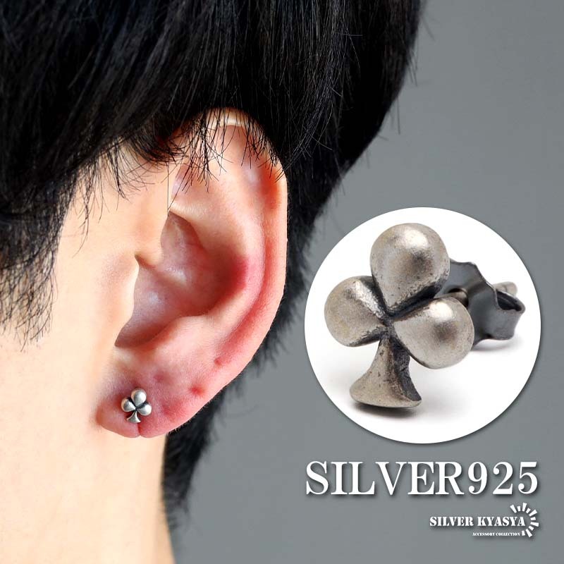 - シルバー925 クローバーピアス トランプピアス マーク 三つ葉 スタッドピアス 小ぶり 片耳 シルバーピアス 金属アレルギー対応