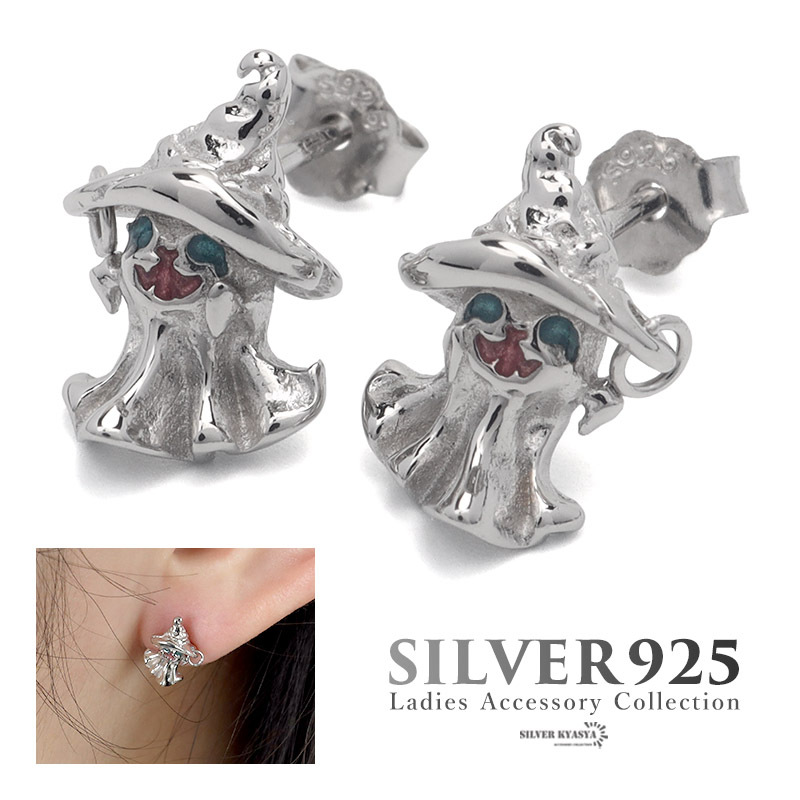 - ピアス お化け ドロップピアス シルバー925 オバケ ゴースト ハロウィン ホラー 魔法 メタリック シルバー 片耳用