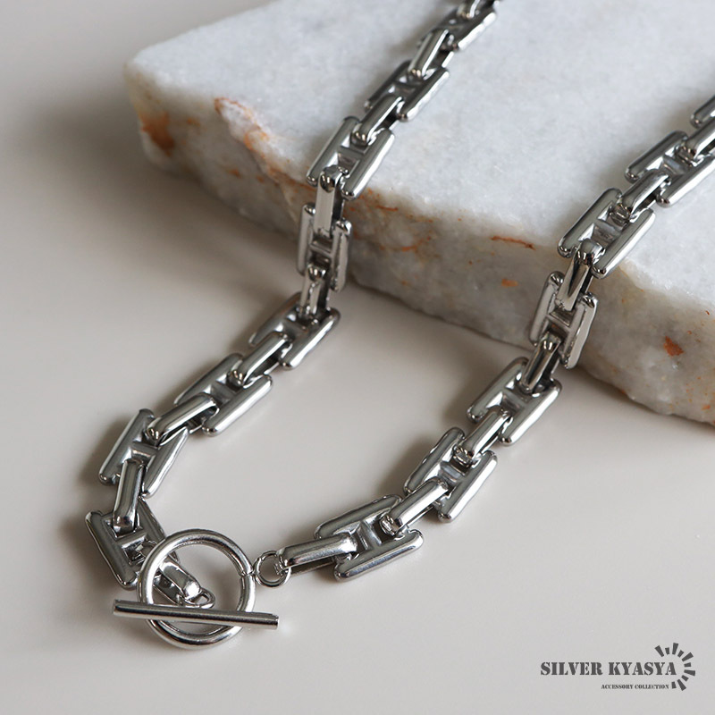 - チェーンネックレス H型 ステンレス マンテル式ネックレス シルバー 45cm アンカーチェーン 金属アレルギー対応