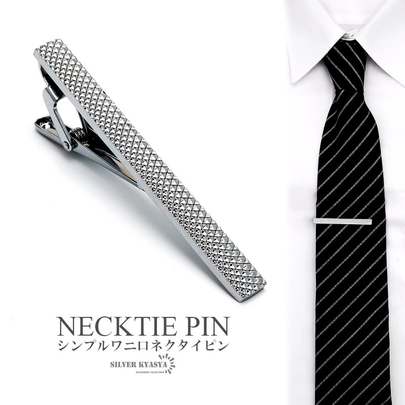 - ネクタイピン タイピン タイクリップ シルバー スタッズ ワニ口 メンズ レディース 父の日 ビジネス フォーマル 冠婚葬祭