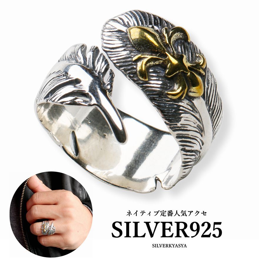 - シルバー925素材 フェザーリング 百合 シルバーリング ネイティブ定番人気 羽根 指輪 925