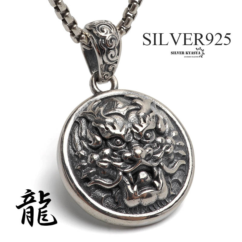 - シルバー925 ドラゴンヘッドネックレス メダルネックレス 龍 ペンダント ネックレス シルバー 重厚感 金アレ