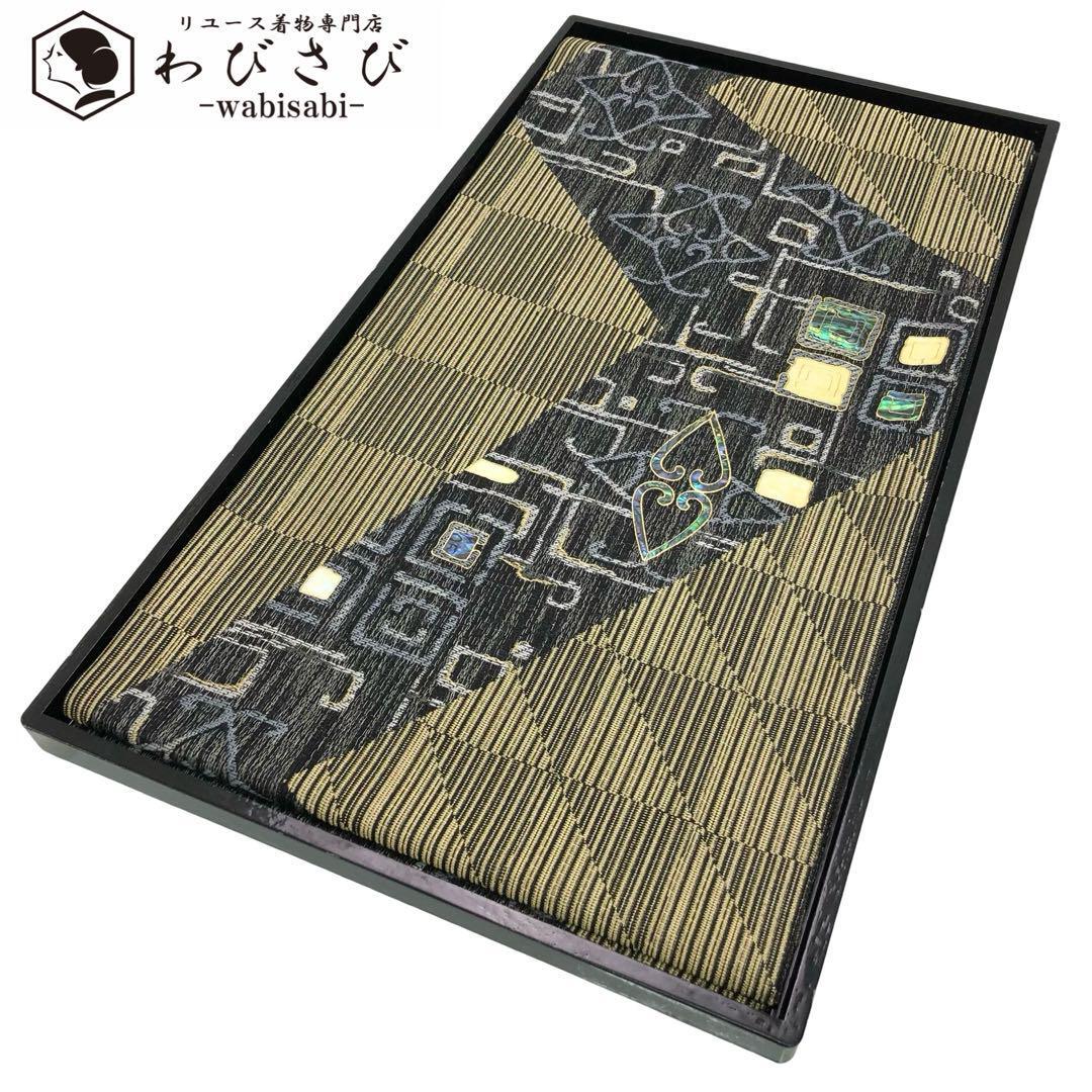 > 袋帯 螺鈿作家 藤本隆士 モダン柄 幾何学模様 黒色 金糸 金彩 O-4609