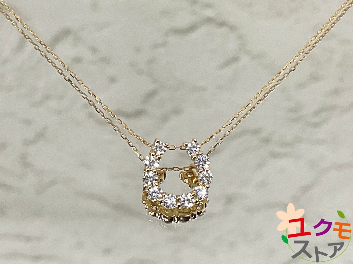 > K18 D0.3ct 馬蹄モチーフ ダイヤモンド 4月誕生石 イエローゴールド チェーン ネックレス アジャスター付き 750YG 40cm ホースシュー 幸運