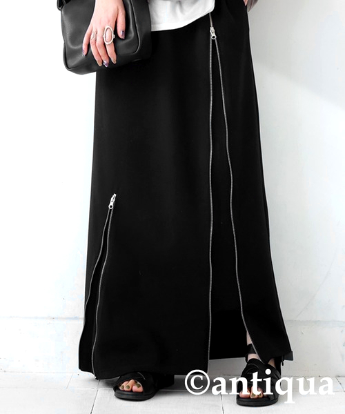 - antiqua アンティカ patterntorso ロングスカート ストレッチ素材 BLK サイズF