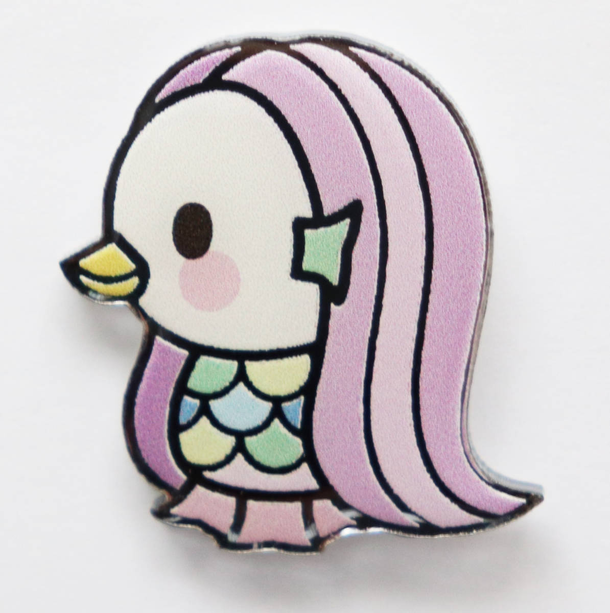 - かわいいアマビエ ピンバッジ 疫病退散 ピンズ 妖怪グッズ アクリル製(クリスタル加工・シルバーメッキ)