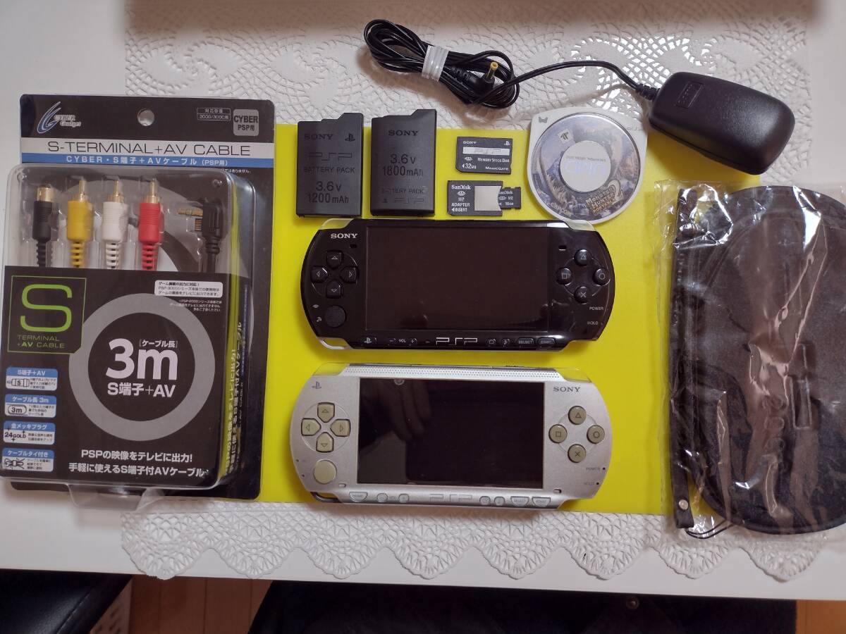 - ☆中古ゲーム機☆ 多数セット ソニー PSP3000 PSP1000 本体・充電器・バッテリー・カード・新品ケース・新品AVケーブル・モンハンなど