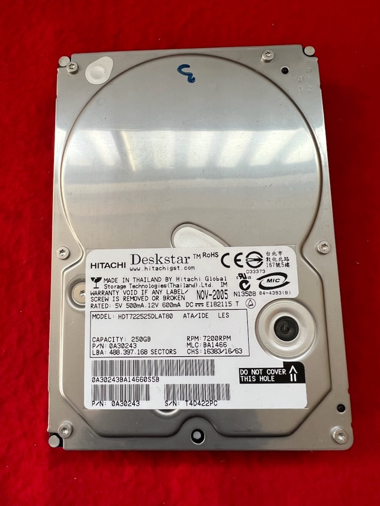 - 不良返金保証 ◆HITACHI 日立製 Deskstar MODEL: HDT722525DLAT80 250GB (AB30)