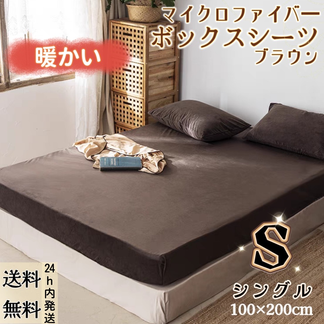> ボックスシーツ 暖かい マイクファイバー ベッドカバー マットレスカバー 秋冬用 とろける肌触り (ブラウン シングル 100×200cm)
