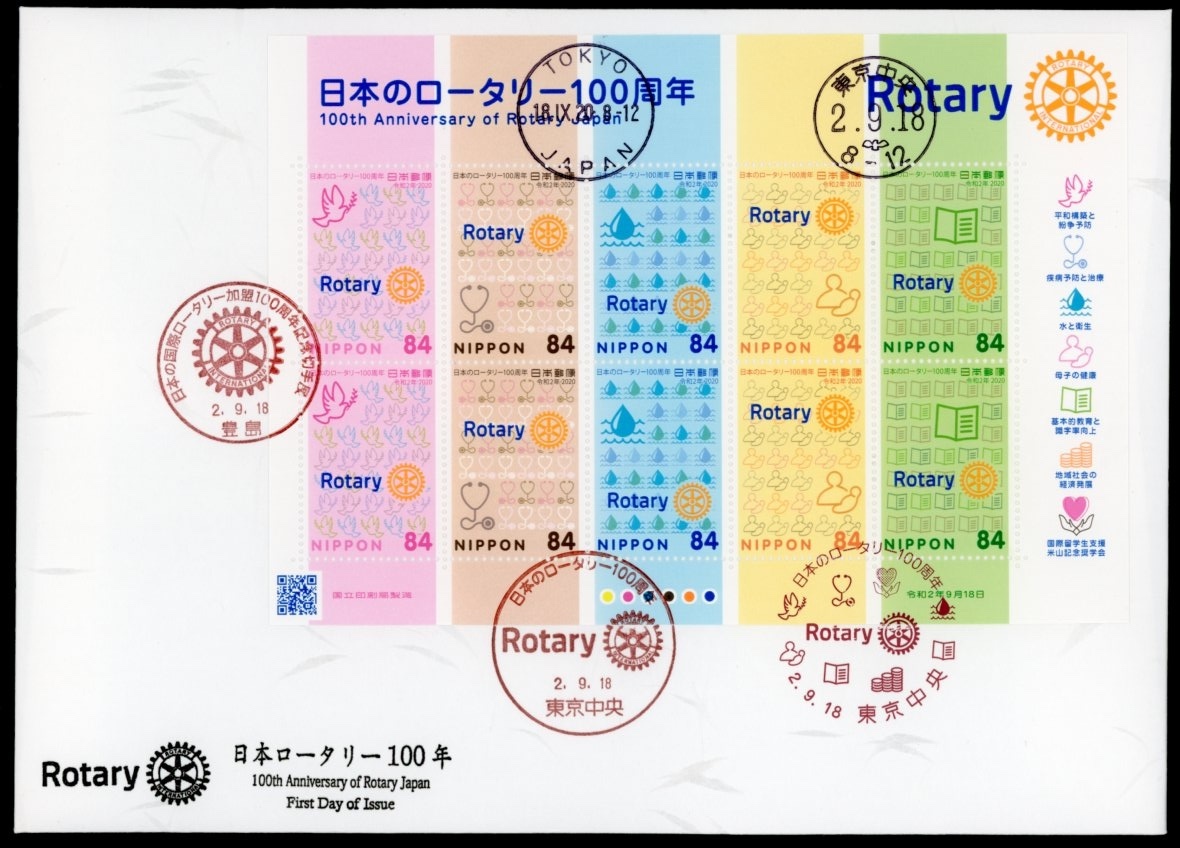 - z180 【FDC】日本のロータリ−100周年[豊島、東京中央/令2.9.18/鳴美版](解説書なし)