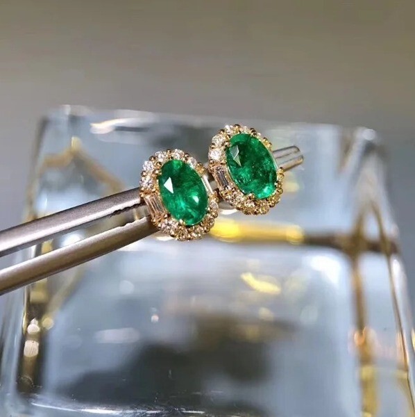 - 【価格の問合せのみで値下げ】証明書付き、女性のための天然エメラルドピアス、4×6mm ◆最初の入札者様は開始価格で購入できます◆_Ma