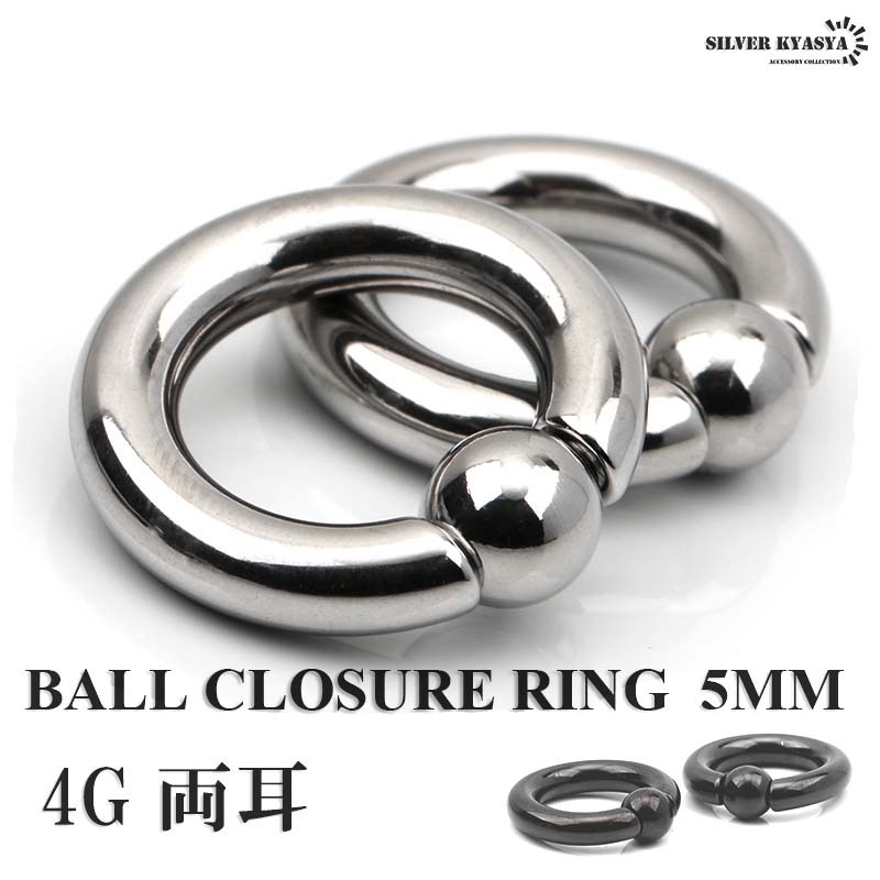 - (シルバー) 4g ピアス 両耳 ボールクロージャーリング シルバー 316l フープピアス ステンレス 幅5mm