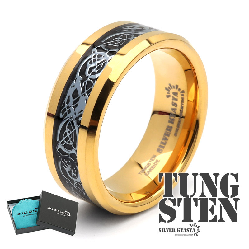 - (22号) タングステン 幾何学リング 指輪 メンズ リング ブラック 黒 メタリック 紋章 金属アレルギー対応 専用BOX付属