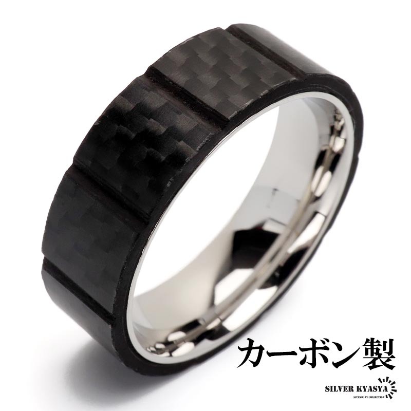 - (17号) カーボンリング ブラックリング 指輪 メンズ 黒 カーボン素材 ステンレス 平打ちリング 金属アレルギー対応