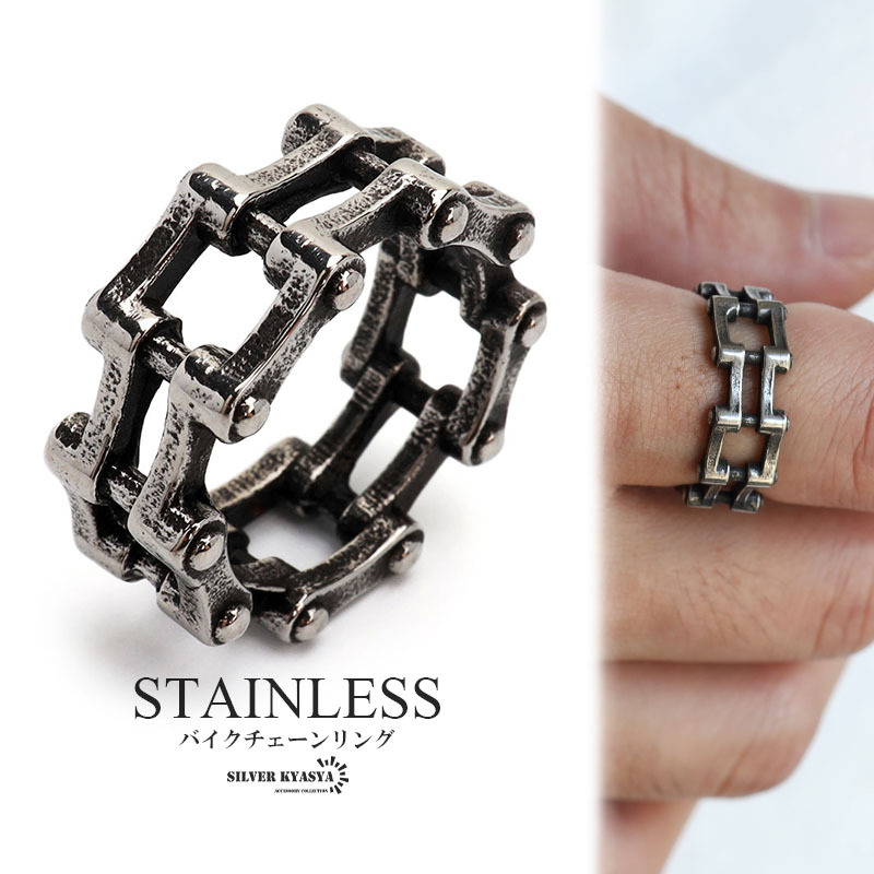 - (29号) ステンレス バイクチェーンリング ライダース ごつめ ワイルド 燻し風加工 シルバー 指輪 金属アレルギー対応