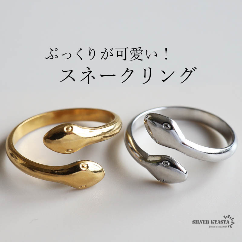 - (シルバー) スネークリング ダブルヘッド 蛇リング 18KGP ステンレス メタリック 個性的 フリーサイズ アレルギー対応