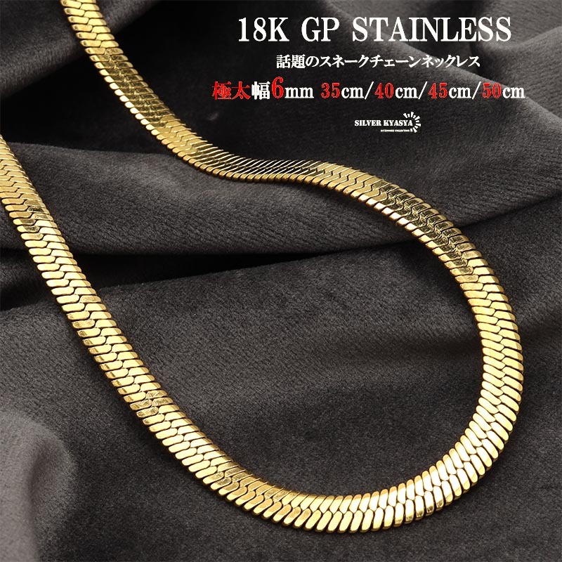 - (45cm) 18k gp ゴールド ワイドチョーカー 太め スネークチェーン ゴールド 金色 チェーン メタルチョーカー