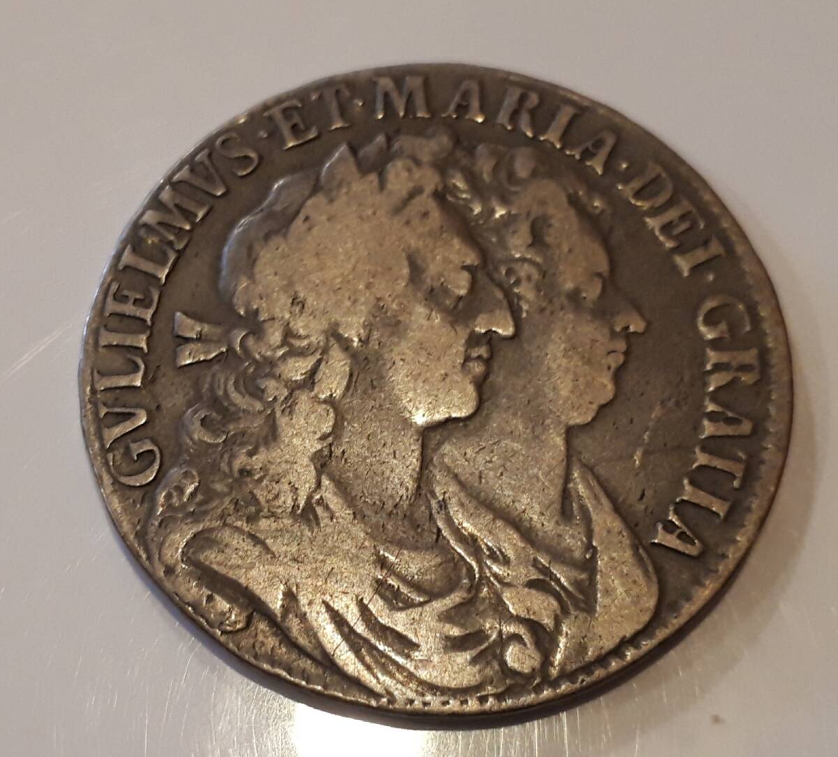 - イギリス 英国 1689年 1/2 クラウン 銀貨 ウィリアム&メリー