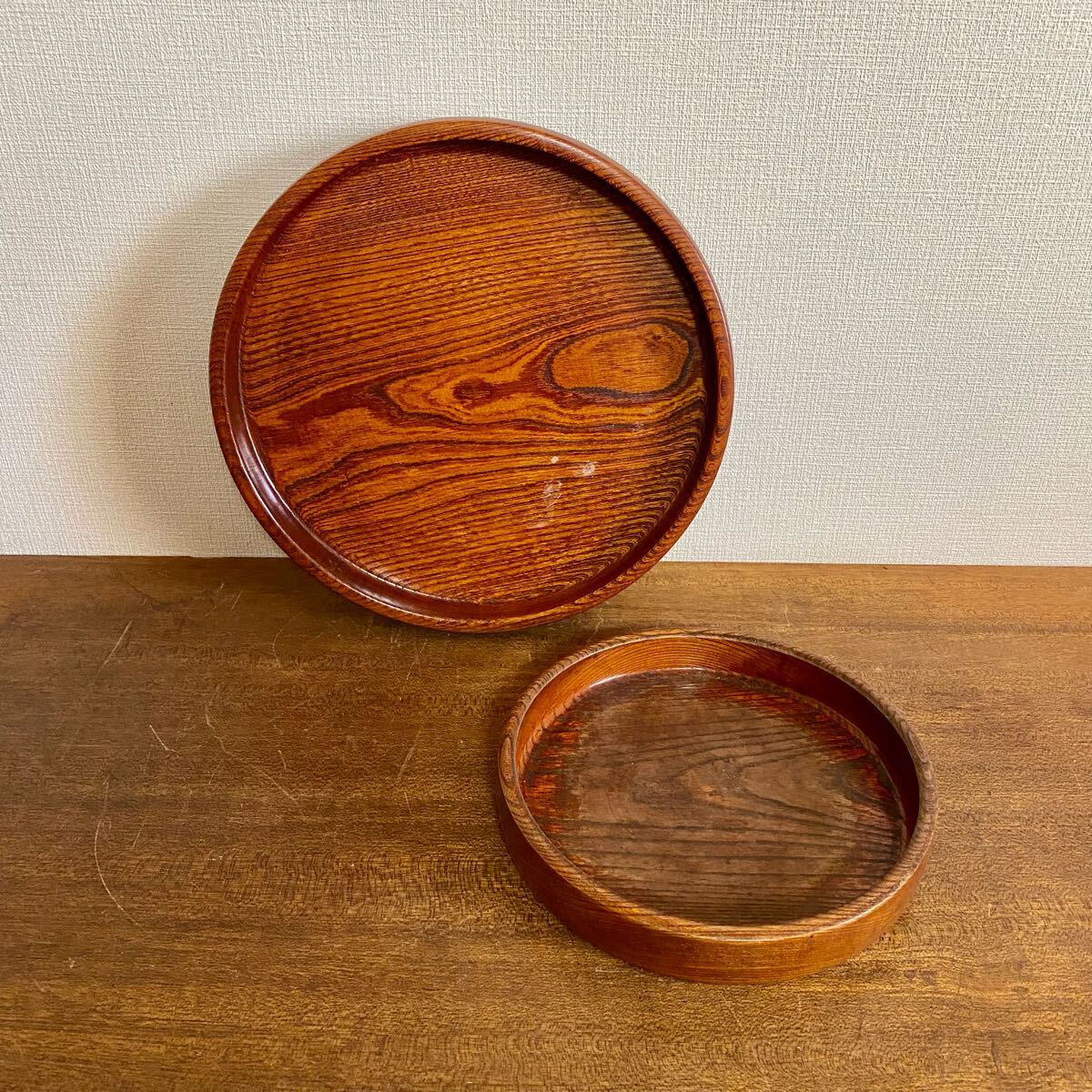 - 丸盆 天然木製 くり抜き盆 2点セット / お盆 菓子盆 無垢 木製 欅 煎茶道具 工芸品