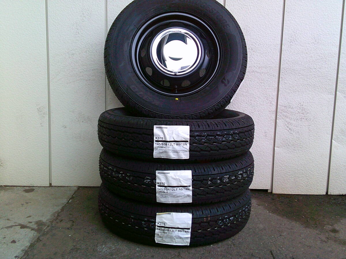 > ネオキャロ☆セミマットブラック/クローム☆ブリヂストンK370☆145/80R12☆新品4本セット☆軽トラ・軽バンに☆Hu