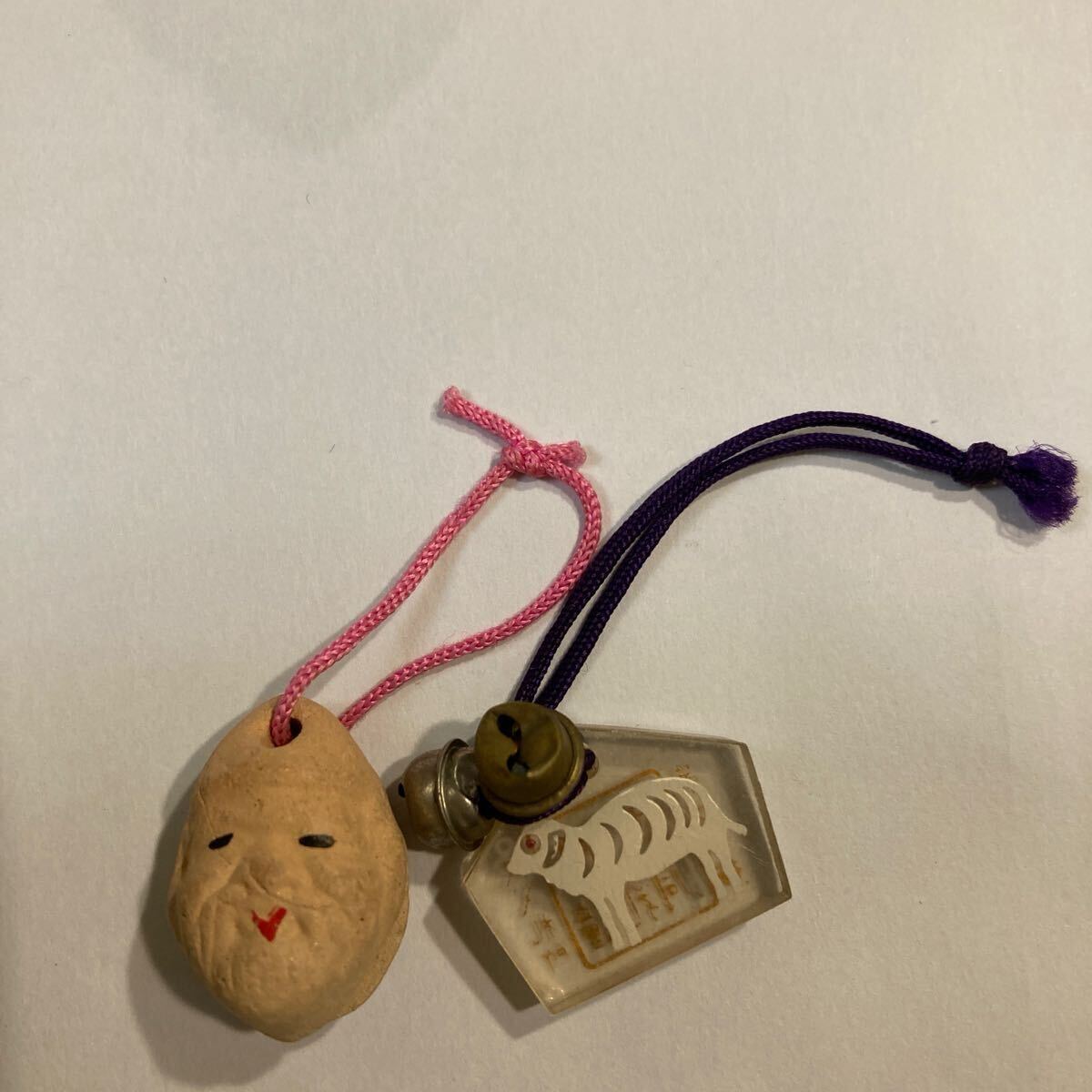 - ふく鈴 絵馬型根付 橋立鍾乳洞 土産 民芸品 顔の鈴 焼物 昭和レトロ 未使用 ユーズド