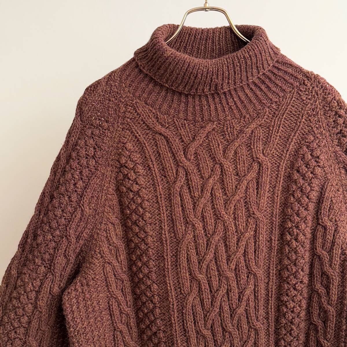 - 希少《 Rare / Vintage 》50s 60s 美品【 アイルランド製 ブラウン メランジ ウール タートル ニット セーター ビンテージ XL 程度 】