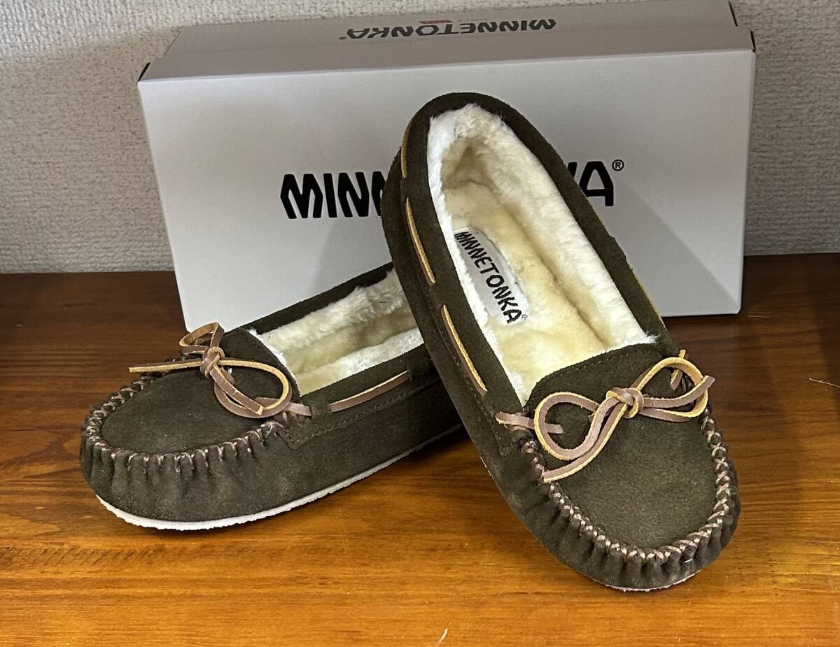 - 新品☆ミネトンカの高級スエード本革製ムートンモカシン☆焦茶☆US6★23.5㎝