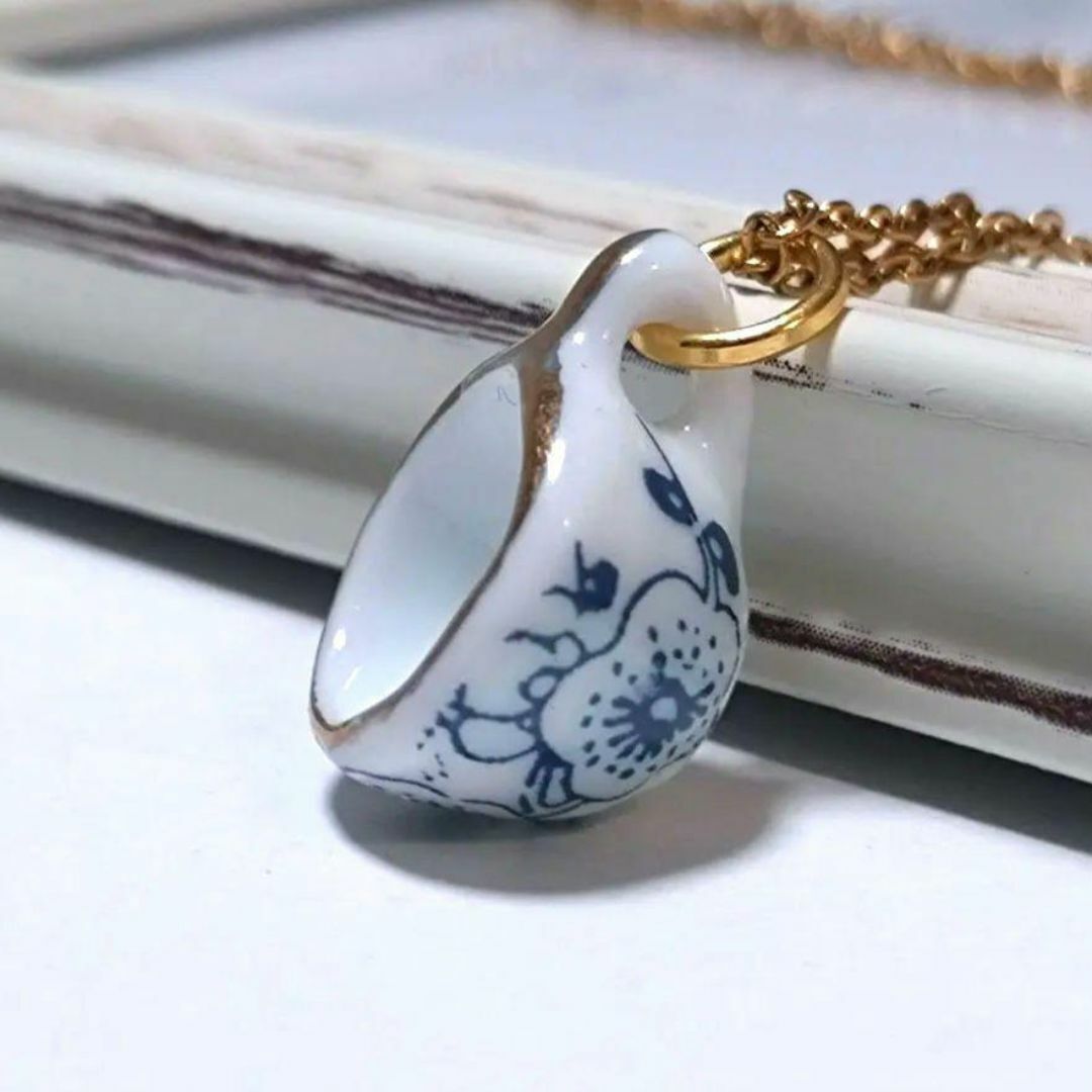- 【1/12】カワイイ 青い花柄のティーカップの小さなネックレス セラミック