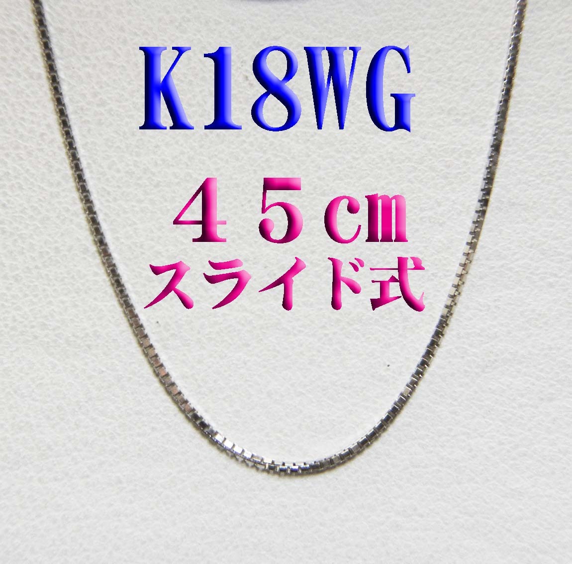 > 限定価格!新品 K18WG 18金 ベネチアンネックレス スライド式45cm 0.7mm K18WG刻印入り