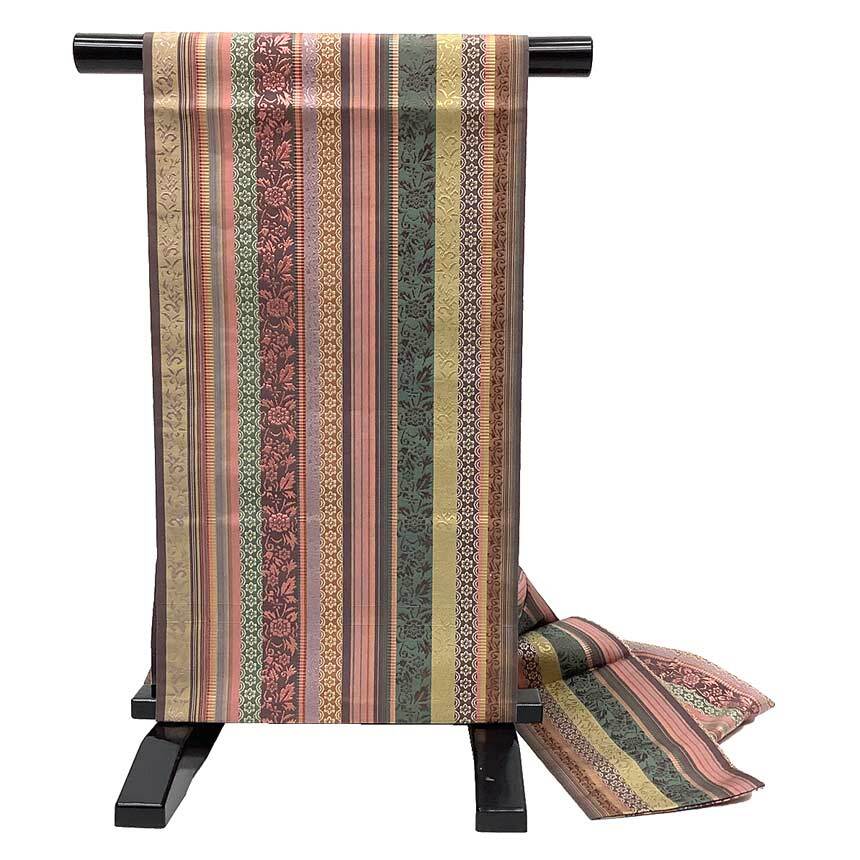 - 京やK364 正絹 名古屋帯 八寸名古屋帯 本場筑前博多織 博多帯 本場博多織 更紗献上柄 袷の着物 単衣の着物 高級浴衣に