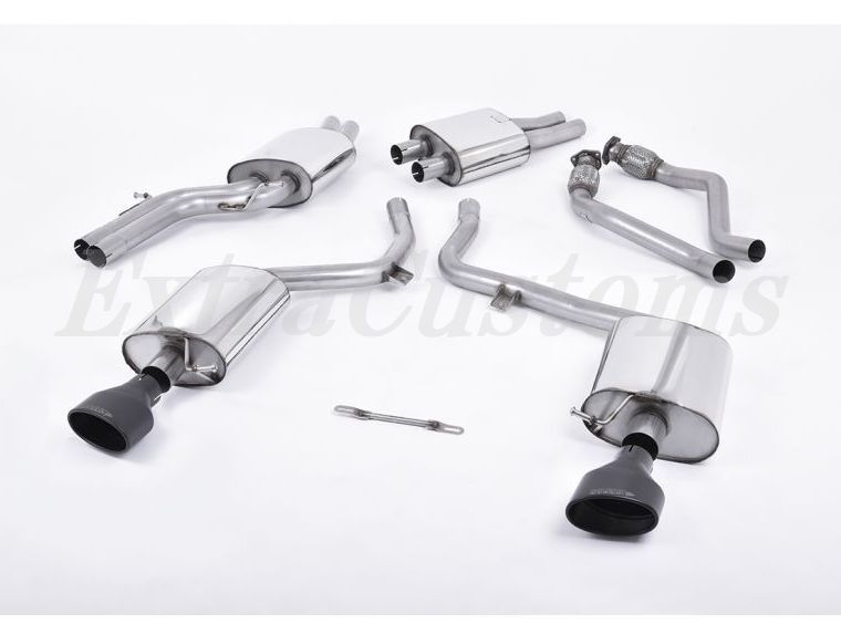 > MILLTEKキャタバックエキゾーストシステム アウディ S4 3.0 スーパーチャージャーV6 B8 Eマーク付き 2本出し セラコートブラック オーバル