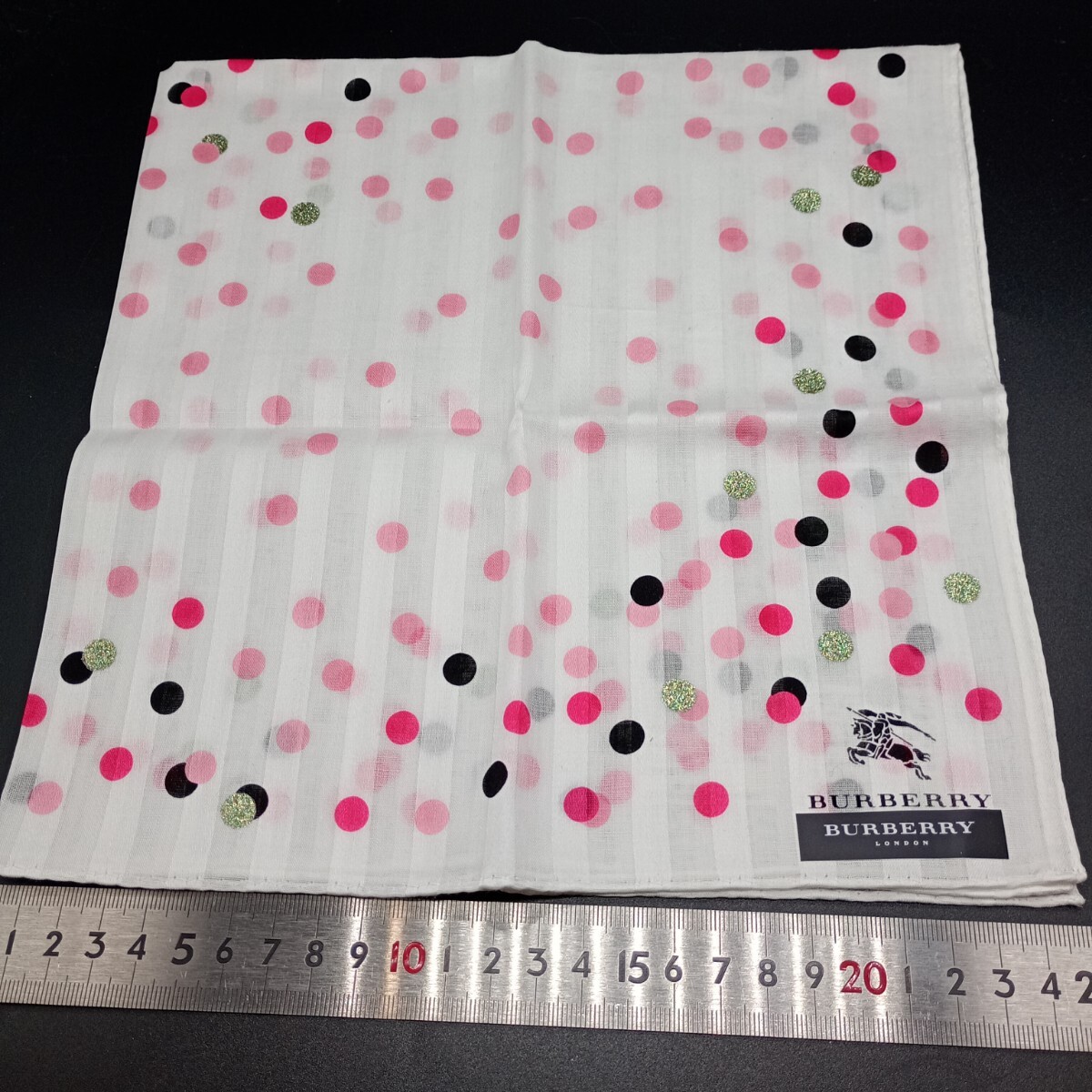 - BURBERRY バーバリー ハンカチ ホワイト ドット ピンク・ブラック・ラメ no.3012