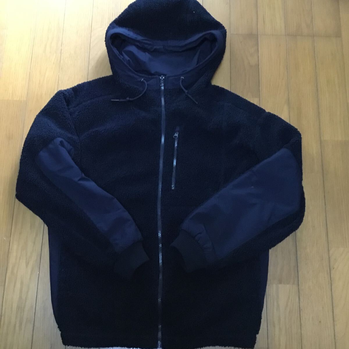 - GU フリース ジップ アップ パーカー ブルゾン メンズ Sサイズ 311-319545 ネイビー 発送ゆうパック60 ボアフリース