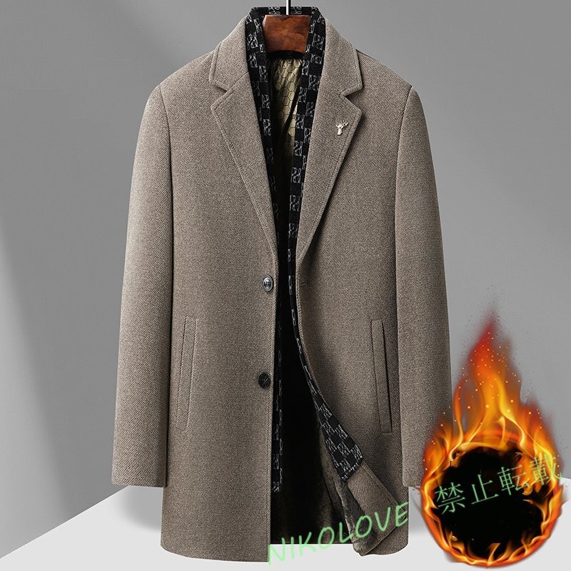 > ☆新品ウールコート インナーダウン付き ビジネスコート 裏フリース 手作り ロングコート カシミヤ チェスターコート カーキ M LK475