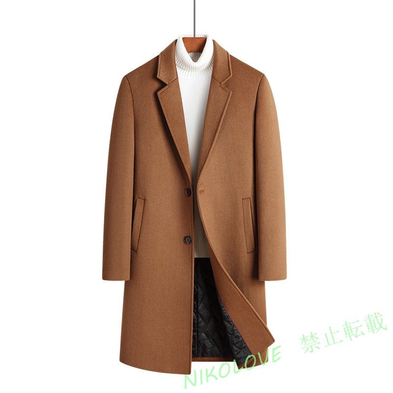 > ☆新品ウールコート メンズコート 紳士 カシミヤコート ビジネスコート ロングコート 細身 チェスターコート カーキ M LK214