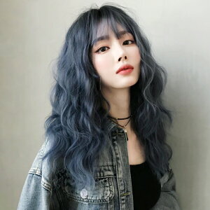 - 【新品】ロング ウェーブ スモーキーブルー ウイッグ 耐熱 コスプレ かつら