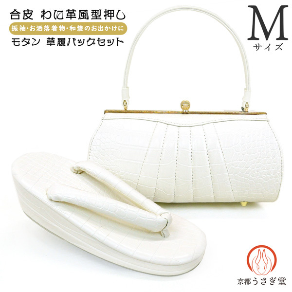 - Mサイズ 合皮 ワニ革風 草履バッグセット zb-091 モダン ホワイト 白 振袖 洒落着 成人式 前撮り 和装コーデ 一綸館