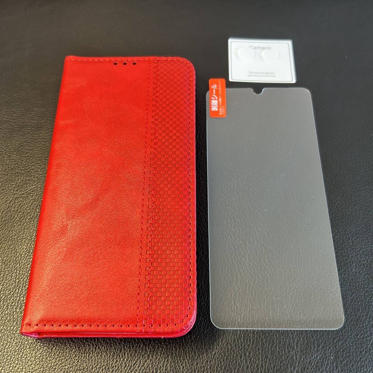 - 【3点フルセット】arrows We2 F-52E FCG02 レザーケース レッド+画面ガラスフィルム+カメラ保護ガラス アローズ