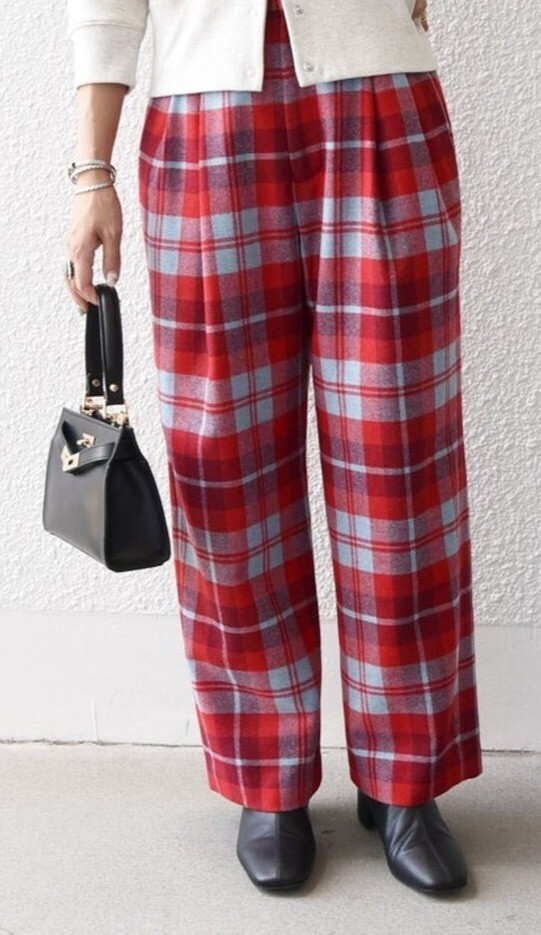 - ★新品★ SHIPS any タック チェック テーパード パンツ