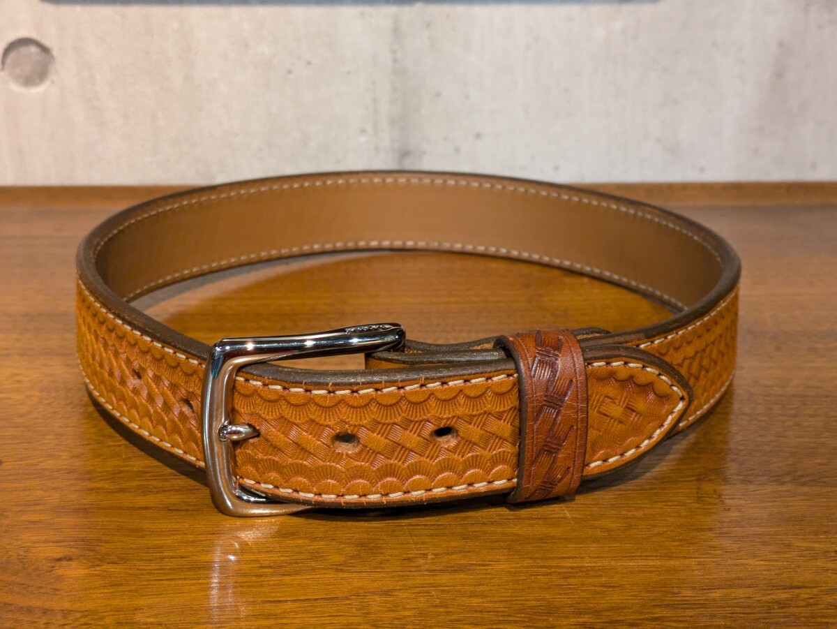 - 新品!USA製 AKER B12 バスケットウェーブ W30 ベルト 1-1/2 ブラウン シルバーバックル アメカジ ポリス POLICE ウエスト74cm前後の方に!