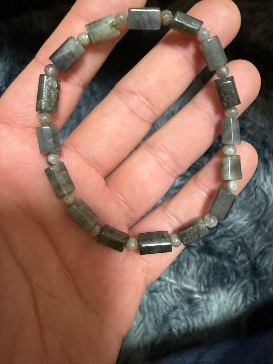 - ブラックラブラドライトの円柱形ビーズ仕様のブレスレット 特価中