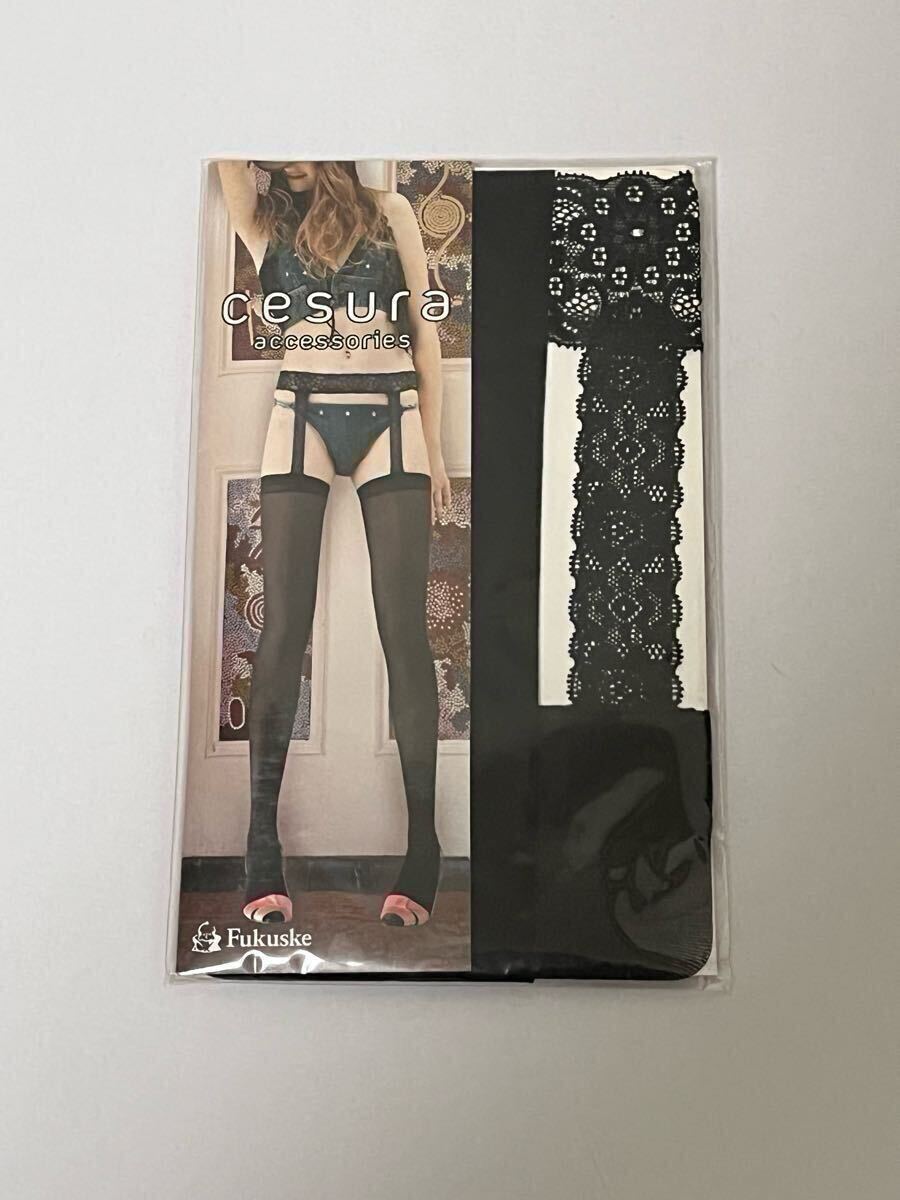 - 福助 ガーターストッキング CESURA ブラック 黒 M〜L プレーンハンガー パンティストッキング パンスト