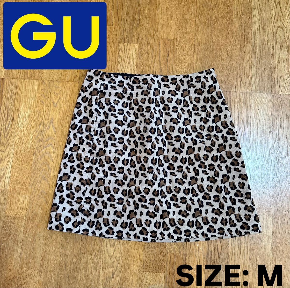 - 【GU】アニマル柄 レオパード 台形スカート ミニスカート コーデュロイ M