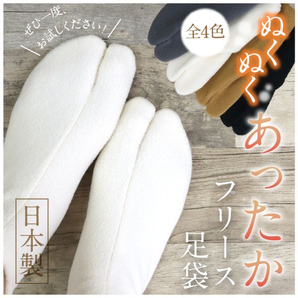 - 【あったか フリース足袋】【ホワイト】 Mサイズ 22.5cm~23.0cm 防寒 靴下温かい ストレッチ インナー足袋 和装小物 男女兼用
